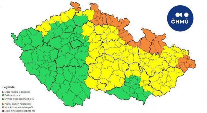 Vlivem vydatný srážek budou stoupat hladiny řek. Nejvíce na Pardubicku a Chrudimsku, kde ČHMÚ očekává i třetí povodňový stupeň. Na ostatním území to bude převážně 1. a 2. povodňový stupeň.